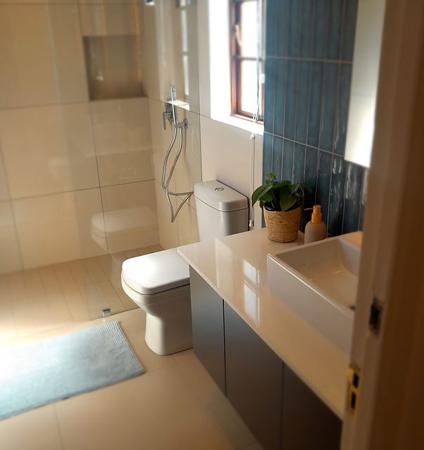 This spacious second floor room is a light and bright north and south facing room. It offers a queen bed with pedestals. Airconditioning, a 40" smart TV, coffee station, a work desk and chair and a wooden wardrobe complete the offering. A tiled ensuite bathroom offers a spacious walk in shower, guest amenities and absorbent towels. Guests in this room will enjoy the use of a small kitchenette with fridge and microwave.